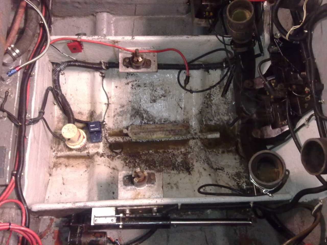 Pilssi on vihdoin puhdistettu, keskellä pohjassa ollut vesiputki osittain poistettu, pohja siistitty / vahvistuslaminoitu ja pilssi maalattu top coatilla. Nyt voi alkaa rakentelemaan konehuonetta takaisin nippuun...