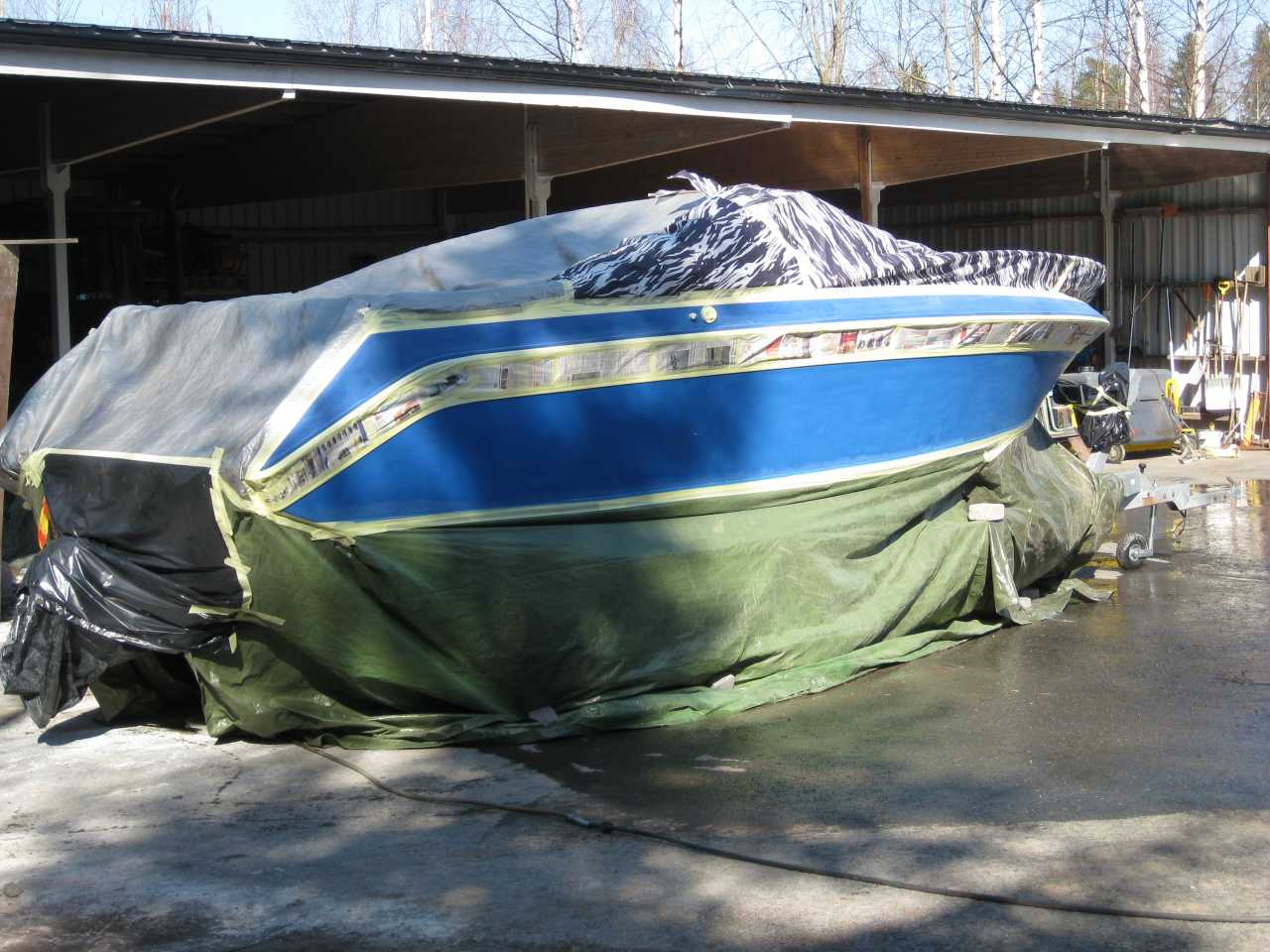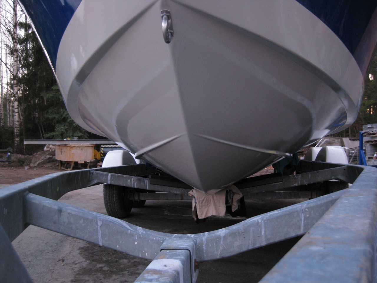 Mulla oli sama projekti -11 keväällä kun rakensin Wellcraft 233 Eclipseäni. Itse hioin kyljistä vanhaan maaliin tartuntapinnan. Maalasin ruiskulla PPG Delfleet 350 maalilla. Maali kulkee nimellä hyötyajoneuvomaali/raskaan kaluston maali. Mutta on todellisuudessa täysin niinkuin vanhemmat automaalit,eli kaksikomponenttia. On todella kestävä maali,on tullut maalattua samalla tavaralla jos jonkin näköistä työkonetta ym. ja kyllä pysyy, sekä kiiltää.Helppo ja nopea maalata ruiskulla,sekä kasvattaa maalin paksuutta mikä veneissä aika oleellinen juttu.Kärsii olosuhteiden vaihtumistakin hyvin,noin +6 astetta minimissään vielä kuivumislämpötila,itse maalasin n. +15 eikä mitään ongelmia. Maalasin myös Eclipsen soodapuhalletun pohjan samalla tavaralla ja ainakin kahden kesän jälkeen on edelleen hieno jahelppo pitää hyvänä! PPG maalia myy ainakin Kanta-hämeessä Hämeväri OY/Jari Vainio. Sävyjä löytyy perusvärejä mitä vaan.