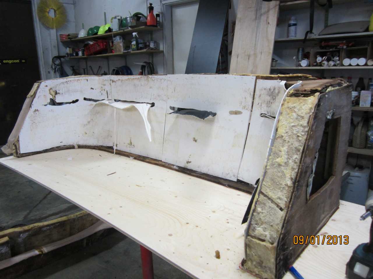 Nyt työn alla KV-konepeiton tilalle tuleva normaali konepeitto alurungolla, sekä auringonottopatja.