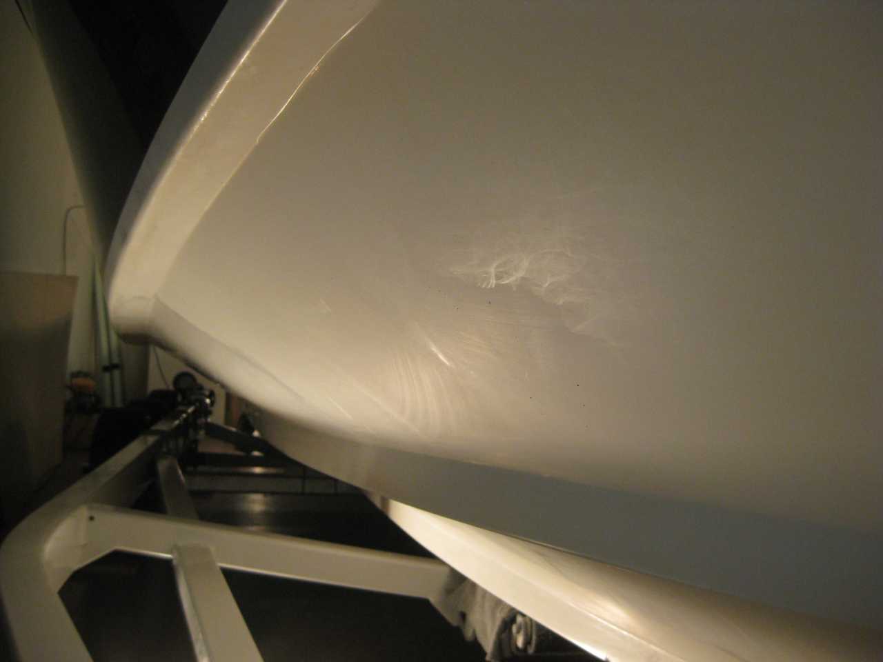 Muun entisöinnin välitöinä tullut kiilloteltua pohjaa. Kaikki 30 jalkaisen,ja isompien sekä pinempienkin veneiden pohjia kunnostaneet varmaan tietää mikä työ on saada pohja kiiltämään! Amerikan serkku ei ole tainnut vuosien aikana kuin pestä myrkyillä pohjaa.Oli meinaan senverran matta. Koko pohjan vesihioneena rupeaa olkapäät huutamaan kortisonipiikkiä! Kyllä soodapuhallus ja maalaus on helpompi ratkaisu. Mutta on se sen arvoistakin, kun lopputulos on kiiltävä. Pari huonoa kuvaa ennen ja jälkeen.