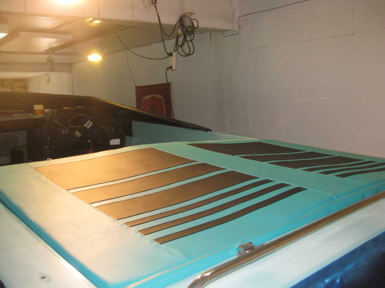 Rupeaa kyljetkin pikkuhiljaa peilaamaan! Sain aurinkopatjankin verhoilijalta, taisi olla ainoa osa missä verhoilutyö onnistui niinkuin pitikin.