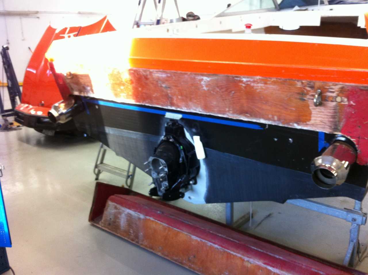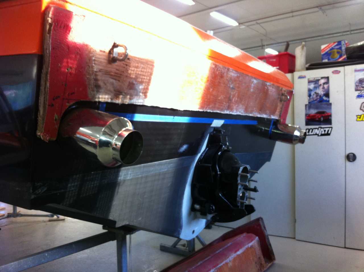 Kun vetolaite oli saanut paikansa niin oli aika pakoputkiston sijoittamiseen...yleensä through hull eli suorat putkistot tuodaan "suoraan" läpi takalaudan...ongelmana tässä on se että putket tulevat silloin suoraan uimatasolle ja samalla haittaavat sen käyttöä ?? Tai ainakin näin luulisin....kertokaa omia kokemuksianne.