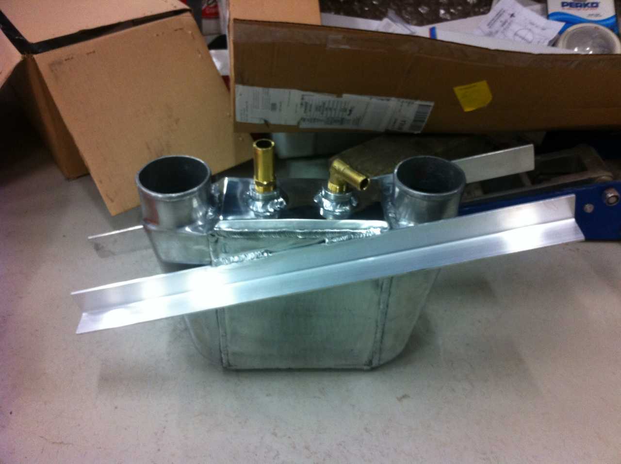 Valitsin mielummin moottorista irrallaan olevan jäähdyttimen kuin olisin etsinyt sopivaa moottoriin kiinnitettävää mallia...osaksi tästä syystä tein moottorikaukalon kohtuullisen tilavaksi jotta asennus olisi helpompaa.